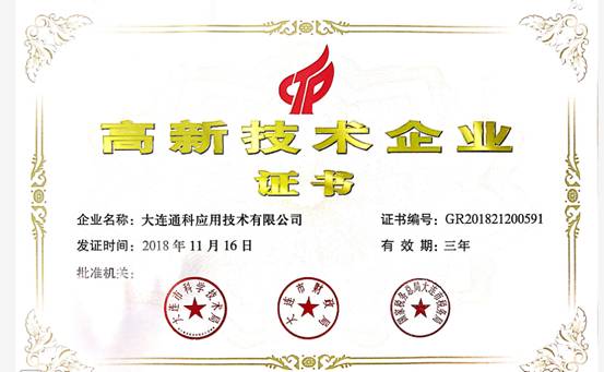 近日,從大連市科技局傳來(lái)喜訊,經(jīng)大連市科學(xué)技術(shù)局、大連市財(cái)政局、國(guó)家稅務(wù)總局大連市稅務(wù)局聯(lián)合認(rèn)定,報(bào)全國(guó)高新技術(shù)企業(yè)認(rèn)定管理工作辦公室核準(zhǔn),大連通科應(yīng)用技術(shù)有限公司再獲“高新技術(shù)企業(yè)”稱號(hào),并取得有效期3年,編號(hào)為GR201821200591的《高新技術(shù)企業(yè)證書》。