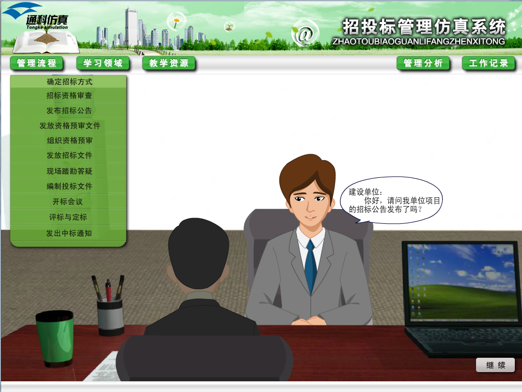 2.招投標管理仿真教學子系統(tǒng)內(nèi)容:模擬招標、投標、評標和定標的全過程。