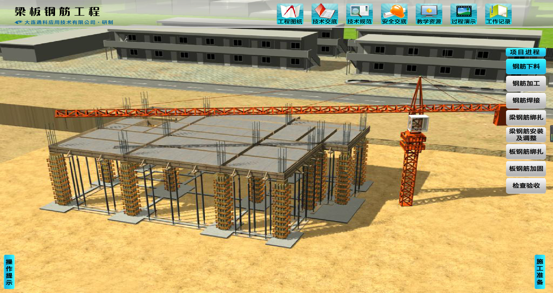 軟件以實際工程項目為主線,以施工任務(wù)為引領(lǐng),突出技能訓練;軟件采用三維可視化控制技術(shù)而制作,具有很強的情景性、智能性、過程性與互動性。