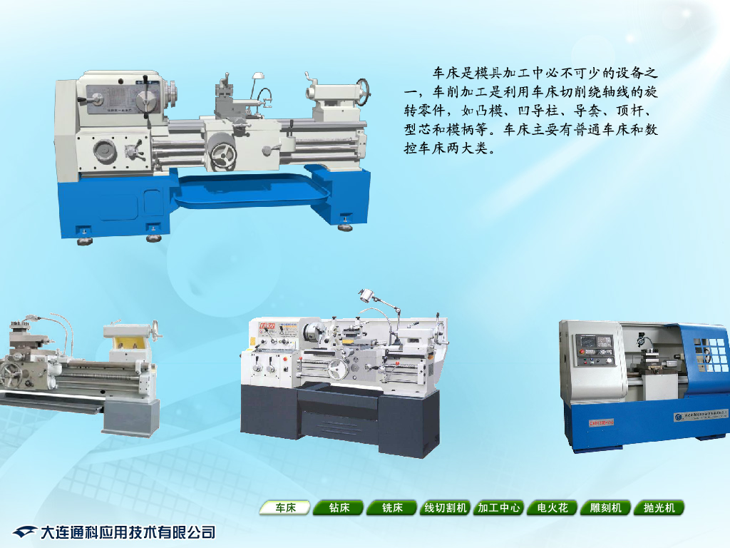 6.模具加工設(shè)備:車床、鉆床、銑床、線切割機(jī)、加工中心、電火花、雕刻機(jī)、拋光機(jī)。
